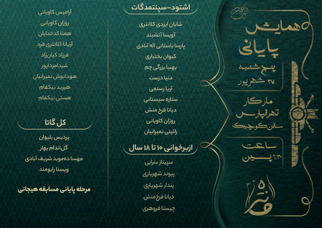 ساعت آغاز برنامه در سالن کوچک و بزرگ، ۳ پسین می‌باشد.