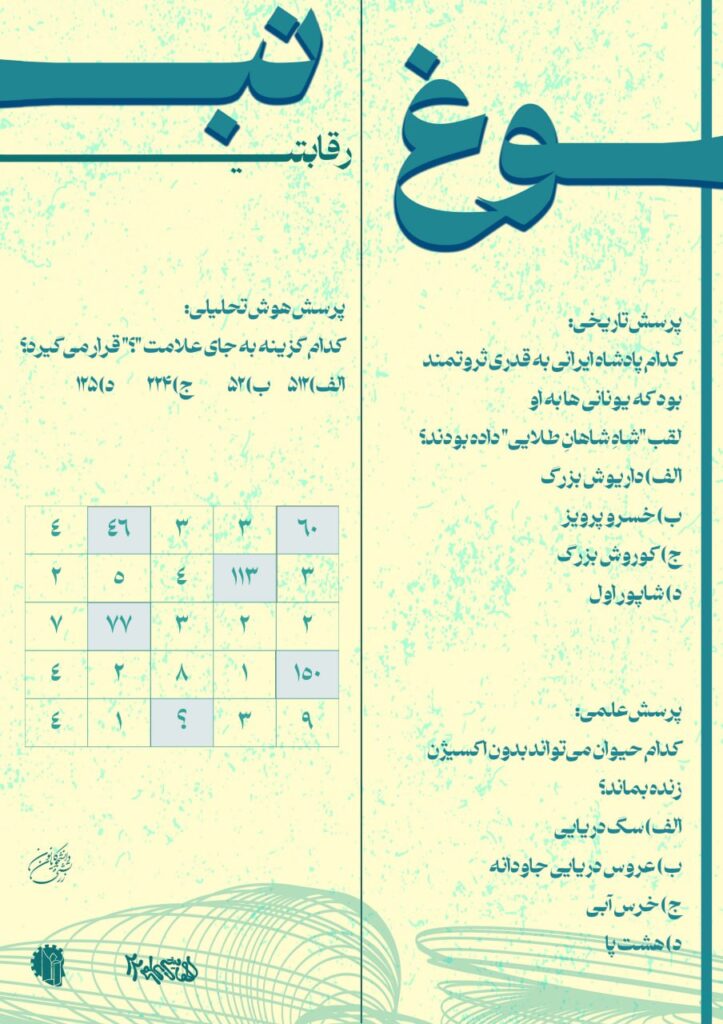 تیم برگزاری نبوغ همایش علمی بیست و دو، امسال برای بالا بردن علاقه دانش آموزان به بخش نبوغ سوالاتی تهیه نمودند.