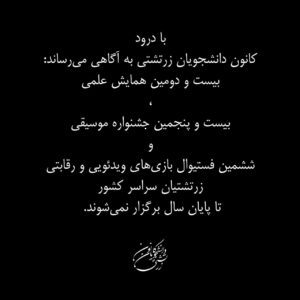 همچنین به اطلاع جوانان عزیز میرسانیم در صورت بهبود شرایط و امکان حضور دانشجویان در کانون دانشجویان زرتشتی، خبررسانیهای دیگری از این ارگان صورت خواهد گرفت. پس برای گرفتن کارت واکسن خود هر چه سریعتر اقدام کرده و منتظر خبرهای بیشتر از ما باشید.