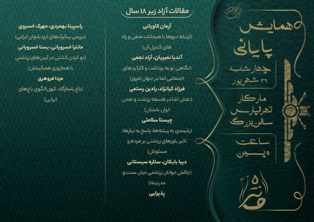 چهل و پنجمین اردوی دانشآموزان زرتشتی سراسر کشور از ۱۹ تا ۲۶ امردادماه ۱۴۰۴ در مارکار تهرانپارس، با برگزاری برنامههای متنوع آموزشی، فرهنگی، ورزشی، دینی