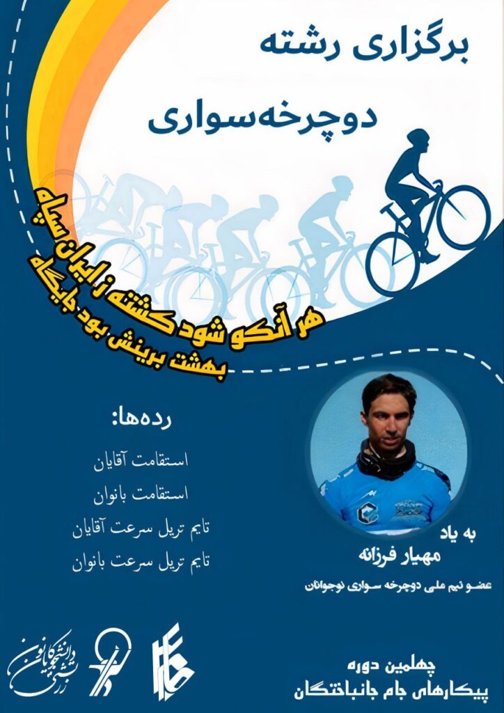 بازگشت دوچرخهسواران زرتشتی به جام جانباختگان با یاد روانشاد مهیار فرزانه امسال، رشته دوچرخهسواری بهعنوان یکی از رشتههای انفرادی و به یادبود مهیار فرزانه، ملیپوش